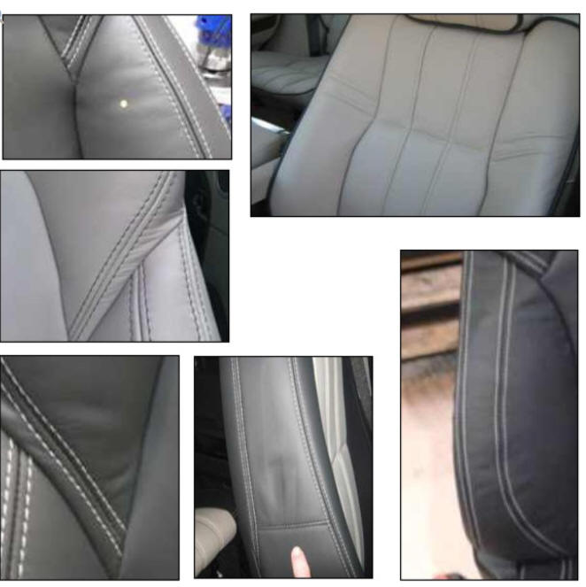 The examples below show the natural characteristics of leather on the front seat back and squab bolsters. These types of natural characteristics of leather would not be accepted under the terms of the Jaguar Land Rover warranty agreement.