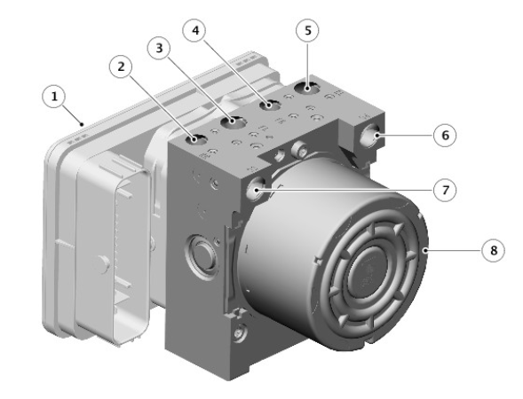The Hydraulic Control Unit (HCU) and Anti-lock Brake System (ABS) control module form a single component and must not be separated. The HCU and ABS control module assembly is supplied in a pre-filled state. After installation, the hydraulic brake system only requires a conventional bleed of the system; there is no requirement to pressure bleed the system.