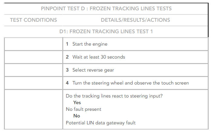 Land Rover Discovery: Parking Aid Proximity Camera / Diagnosis and Testing