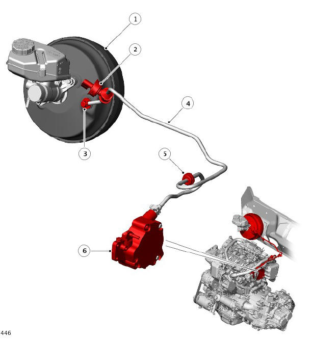 On the TD4 2.2L engine, the vacuum pump has an additional vacuum port, which is connected to the Exhaust Gas Recirculation (EGR) system.