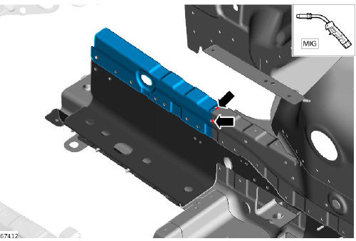 - Tack MIG weld the rear side member outer reinforcement butt joint