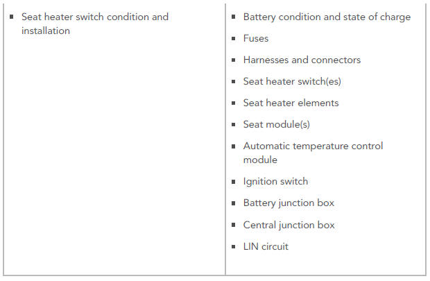 In the event of suspected climate seat faults use the pinpoint tests detailed