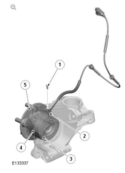 An active wheel speed sensor is installed in each wheel knuckle, and provides the Anti-lock Brake System (ABS) control module with a rotational speed signal from each road wheel. The head of each wheel speed sensor is positioned close to a magnetic encoder incorporated into the seal of the wheel bearing. Each front axle bearing encoder contains 48 north and south pole pairs; each rear axle bearing encoder contains 48 pole pairs. A fly lead connects each sensor to the vehicle harness.